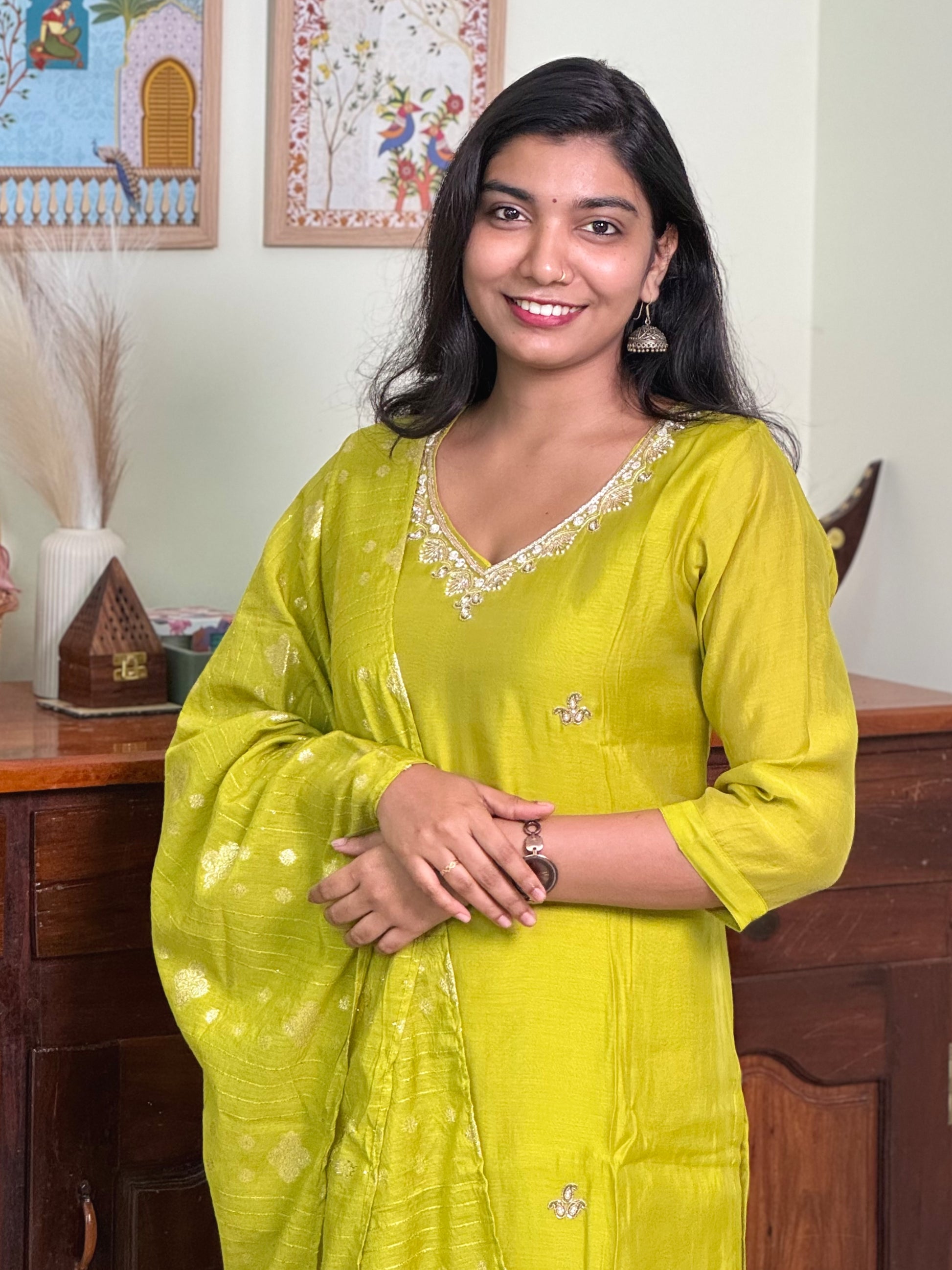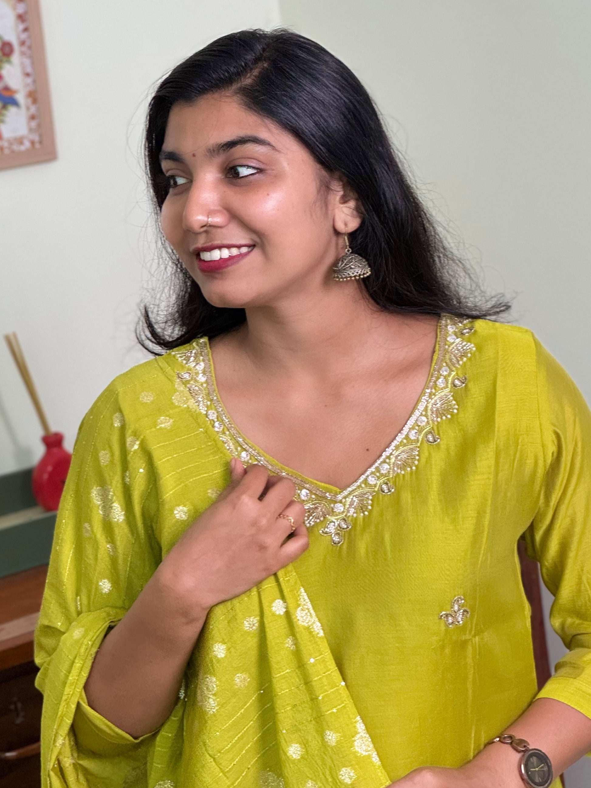 1014-Green Dola Silk Suit